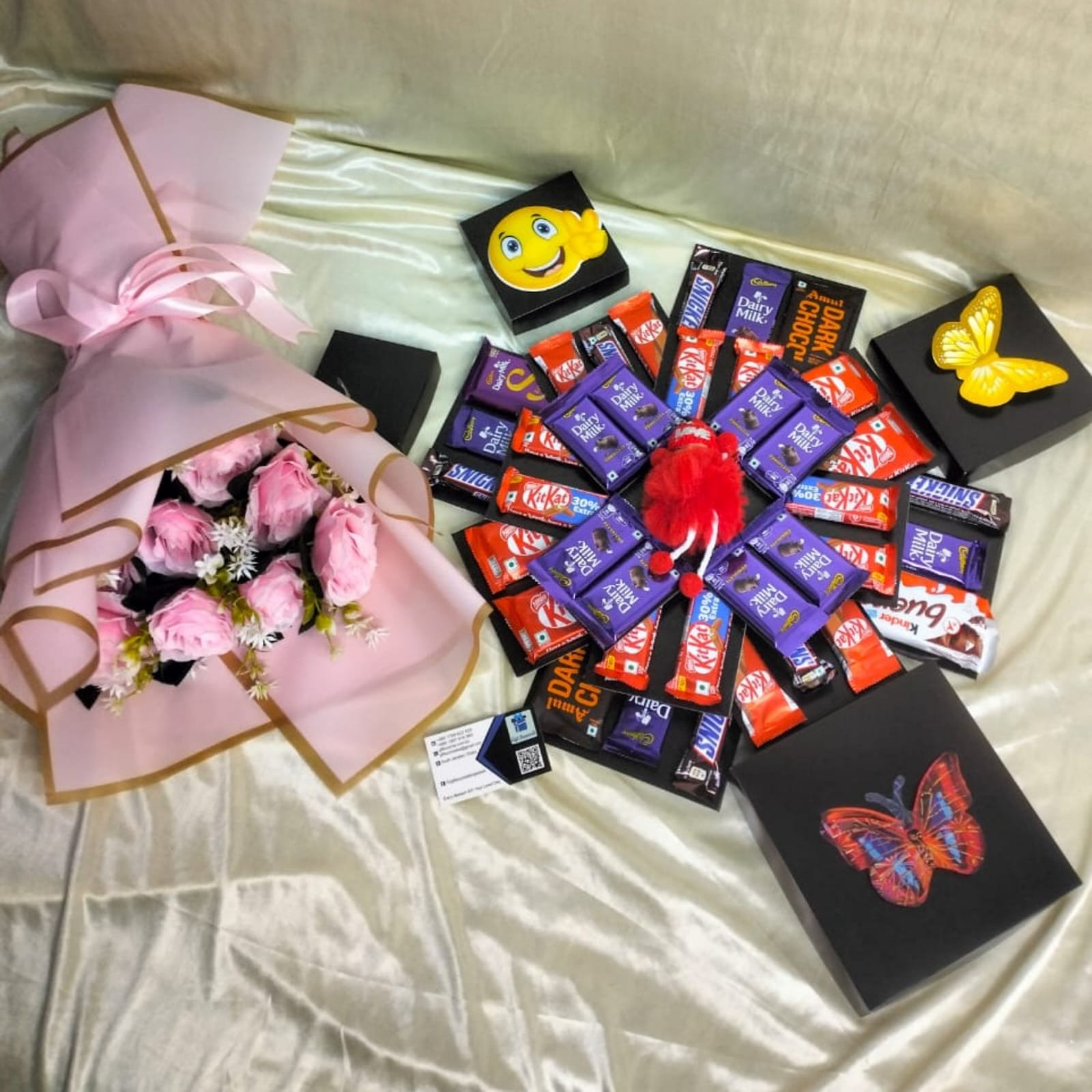 Filled with Dairy Milk, KitKat, Snickers & more, this box opens up to a delightful surprise — perfect for birthdays, anniversaries, or romantic surprises.