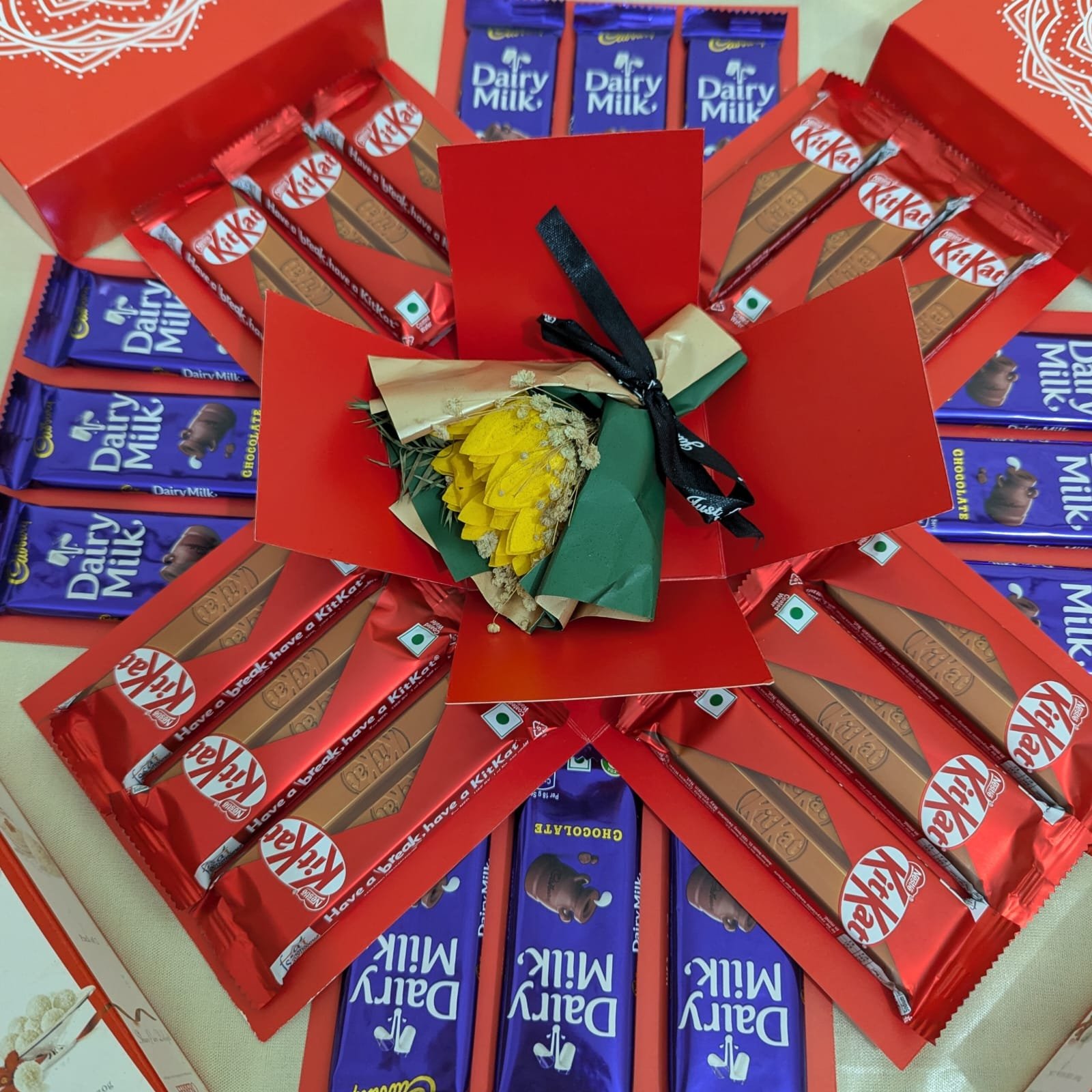 Experience the magic of gifting with our Sweet Surprise Explosion Box! 💝 Filled with Dairy Milk, KitKat & Raffaello chocolates, this luxurious box bursts open to reveal layers of sweetness and love. A perfect gift to melt hearts on birthdays, anniversaries, or any special occasion — exclusively from Gift Surprise BD. 🎁✨